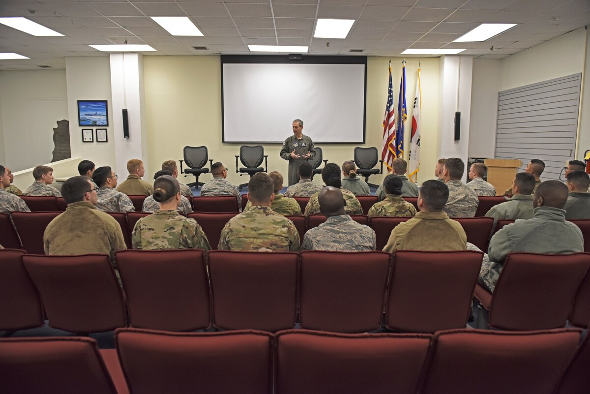 7th AF commander trains with the Wolf Pack Published Nov. 12, 2019 By Staff Sgt. Mackenzie Mendez 8th Fighter Wing Public Affairs KUNSAN AIR BASE, Republic of Korea -- Lt. Gen. Ken Wilsbach, 7th Air Force commander, visited the 8th Fighter Wing at Kunsan Air Base for an in-depth look at the innovative ways Wolf Pack Airmen are impacting the Pacific theater, Nov. 8. During his visit, Wilsbach learned about how the 8th Civil Engineer Squadron is paving the way for future Airmen to operate and accomplish their mission in safer and healthier environments. Wilsbach also had the opportunity to speak with first-term Airmen, tour the 8th Security Forces Squadron Military Working Dog kennels and see how 8th Maintenance Squadron munitions section is challenging the standard for safely storing and transporting munitions.