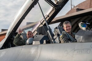 U.S. Air Force Col. William McKibban, 51st Fighter Wing commander, and Amber McKibban, spouse of McKibban, wave to a crowd during the 20th ROK U.S. Friendship Festival, near Osan Air Base, Republic of Korea, Oct. 14, 2023. The two-day event held every fall to celebrate the partnership of the U.S.